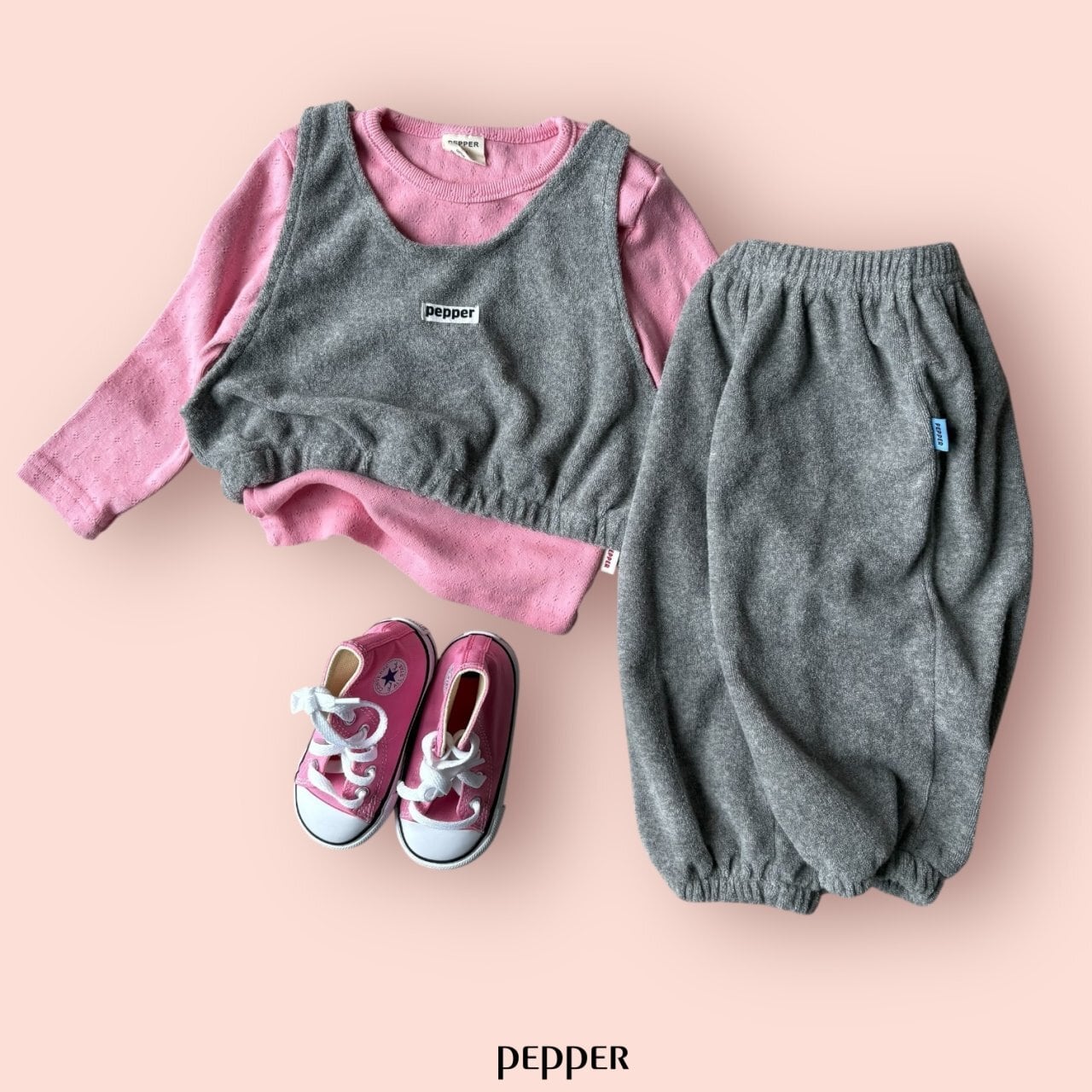 80-120 ꒰ 予約 ꒱ Terry jogger pants / Pepper ⸝⋆