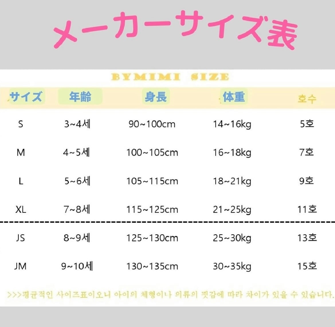 迷ったら添付画像のサイズ表を